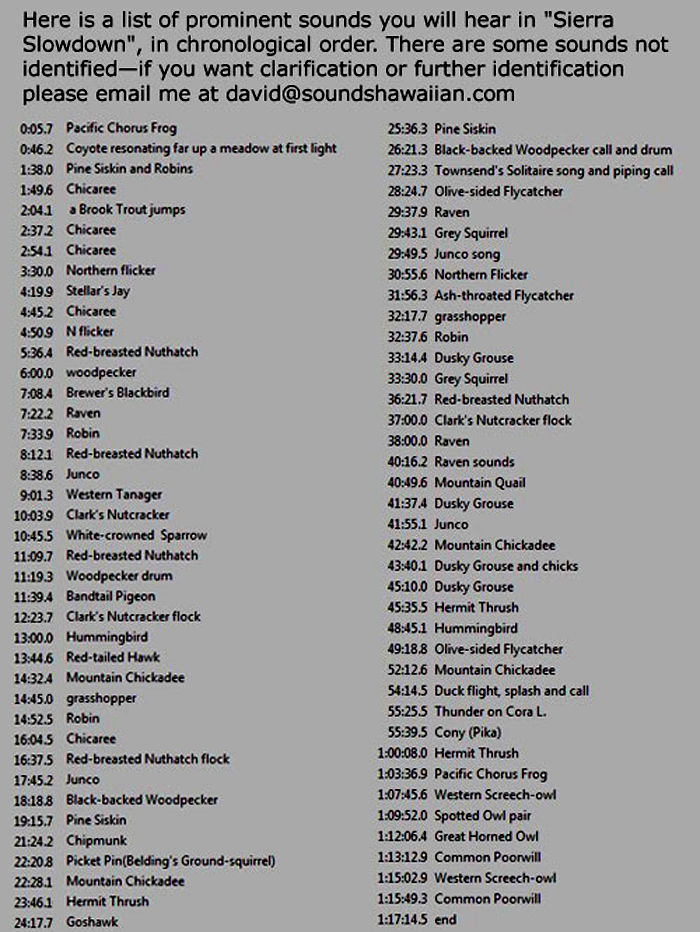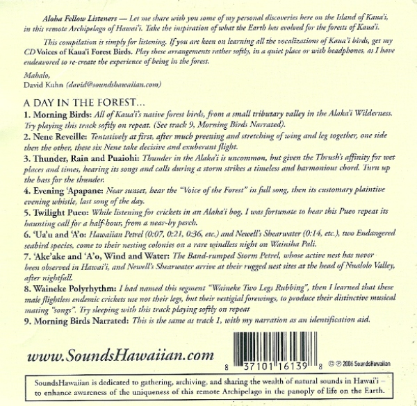 | For quiet listening--A companion to "Voices of Kaua`i Forest Birds" above. |